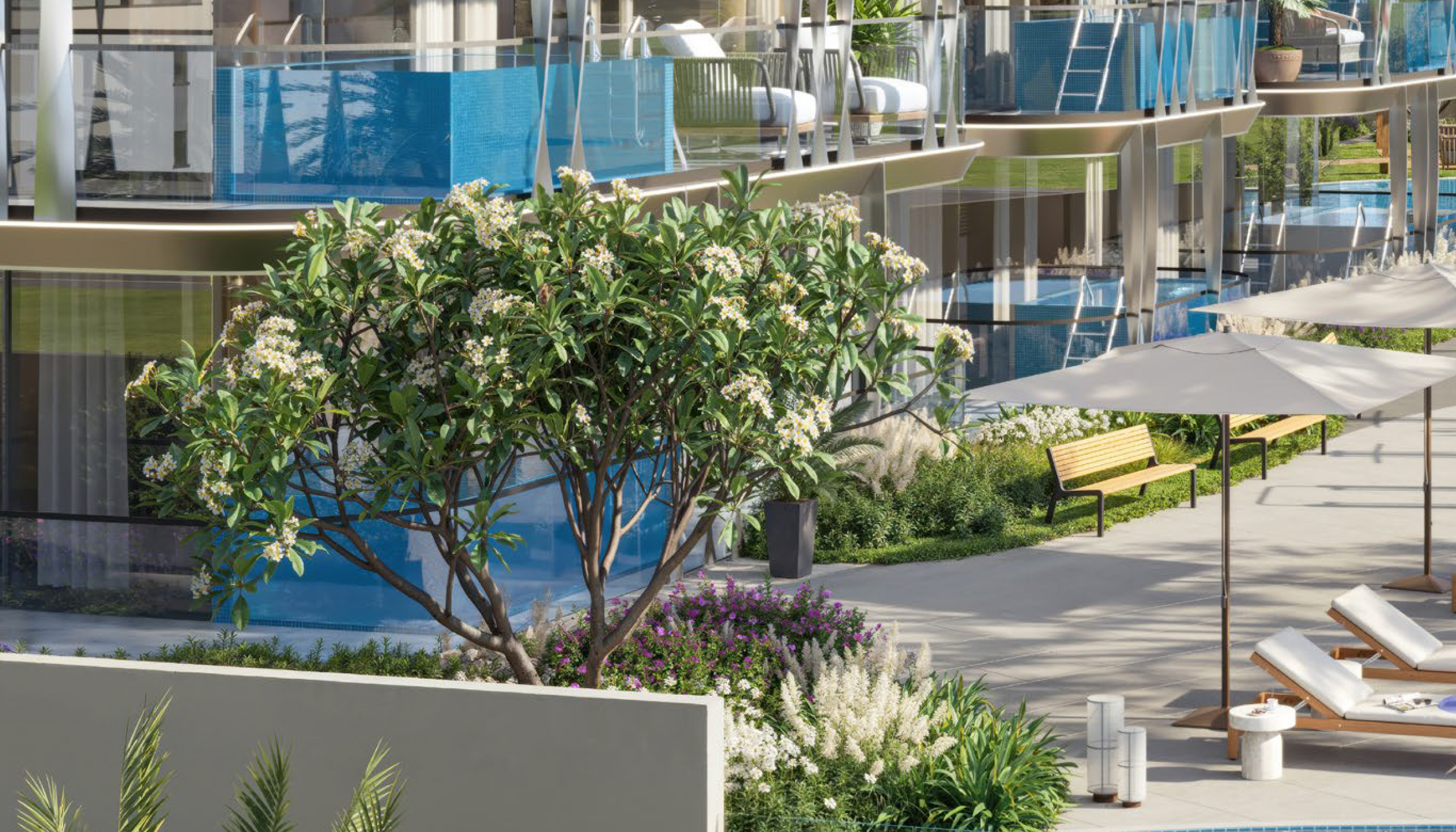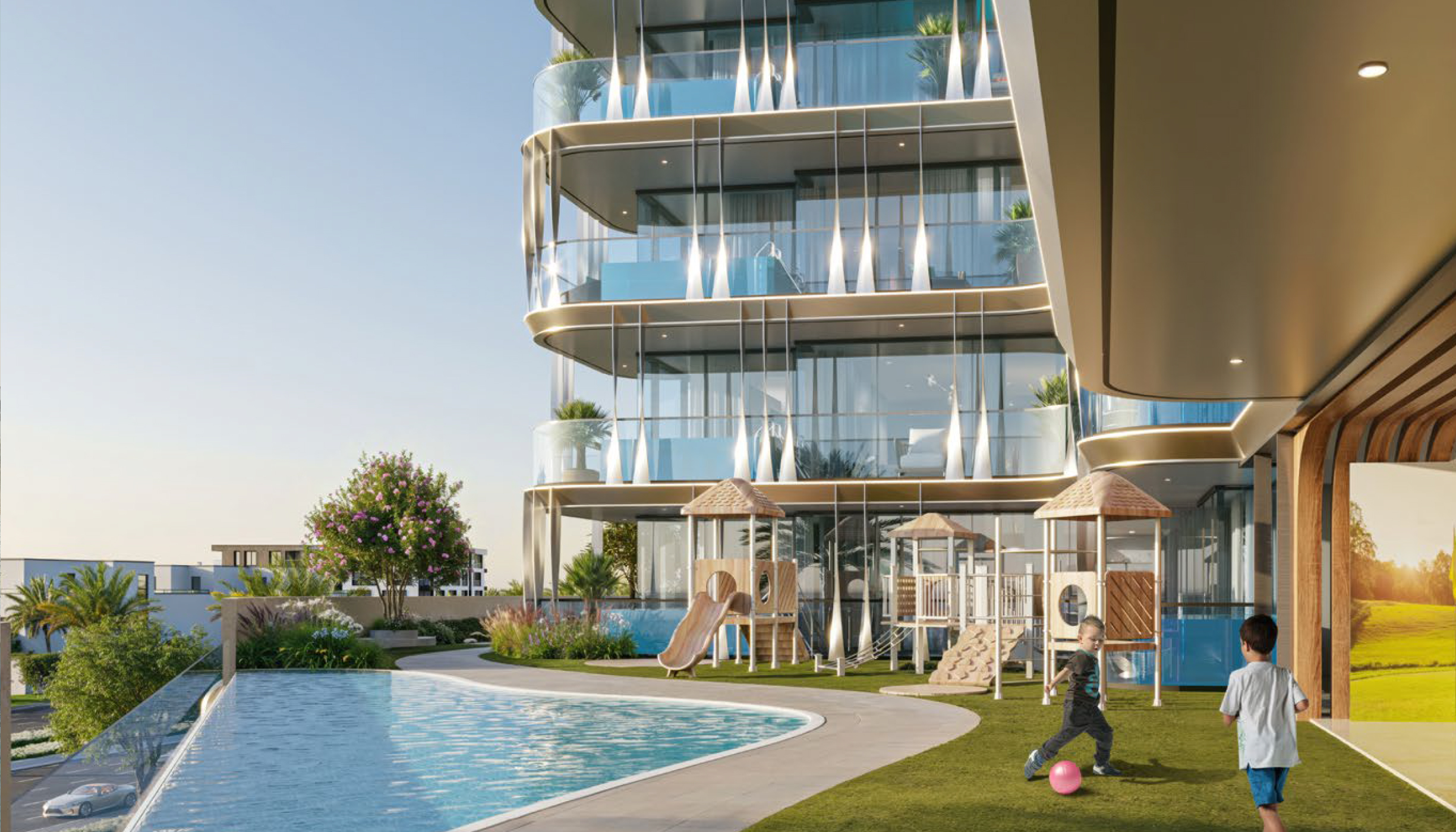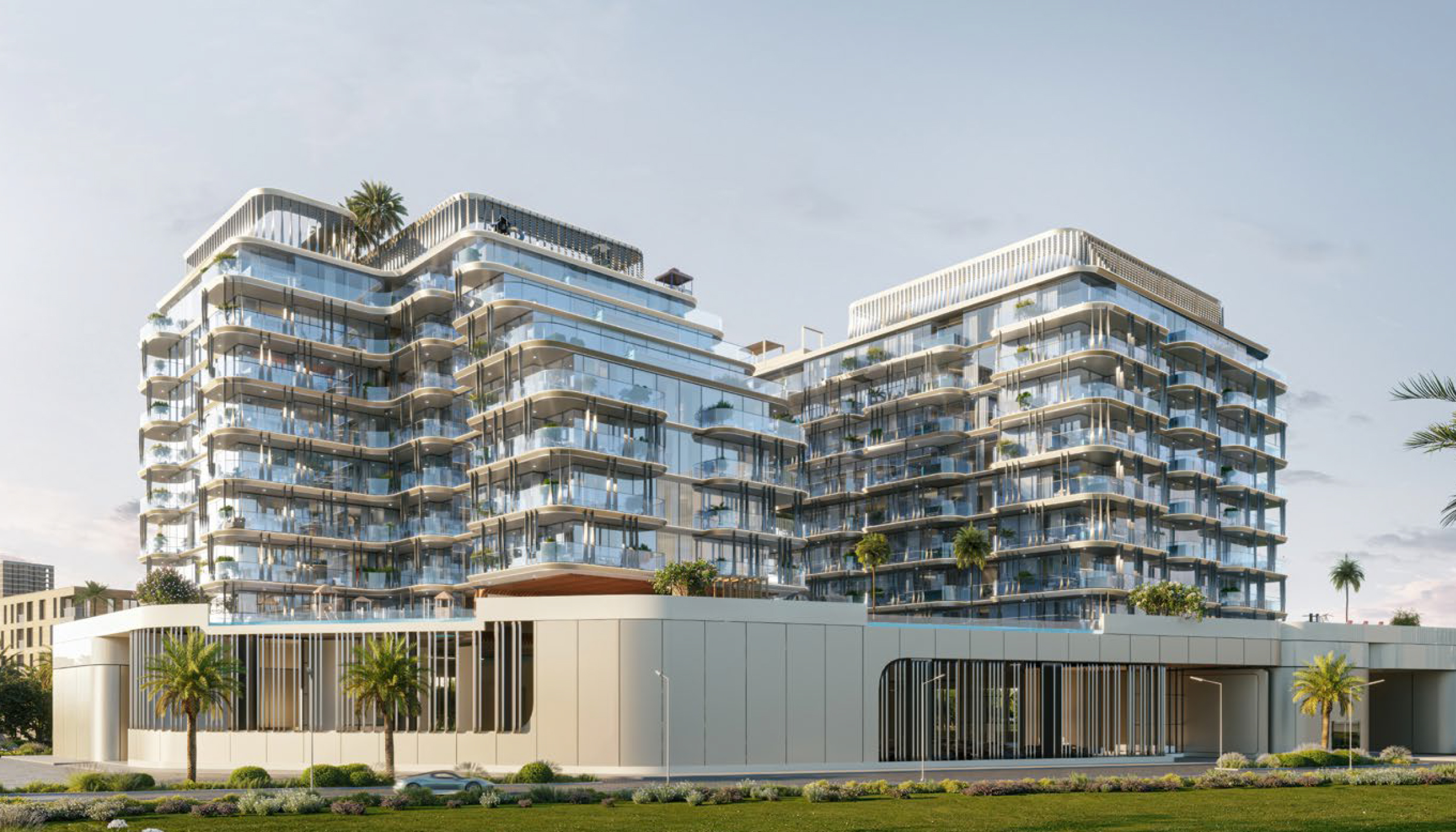 It provide two towers that is A&B with distinct floor plan along with maid room, store and pool side. The one-bedroom apartments come with store room and?pool options and two-bedrooms homes with maid room and a pool option. It is?a distinctive waterfront project on the shoreline which reflects forward looking aesthetics. The styling is an elegant balance between form and function harmonising clean, crisp surfaces with softer flowing lines that reflect the natural movement?of the coastline. Together, these all combine to?make a building that is both modern and contextual. From every perspective, the building seamlessly integrates with a picturesque waterfront, all while reflecting?quality design and exquisite attention to detail.