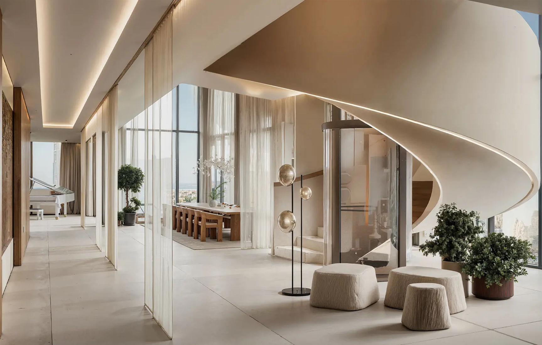 Located in the bustling centre of Dubai, DWTN Residences has the privilege of location that combines convenience, culture, and the energy of the city. Situated in the golden triangle of the Sheikh Zayed Road, Downtown Dubai, and Business Bay, this legendary skyscraper will be in the direct vicinity of some of the most renowned city landmarks. It can be the spectacular Burj Khalifa or the vast Dubai Mall, the lively Business Bay district or any other attraction, they all are a short walk away. Offering unhindered access to key arterial roads and being in the vicinity of the Business Bay Metro Station, this promises a lifestyle characterized by convenience of transportation and status of the location. Around the tower, there are cultural attractions, fine dining restaurants, small art galleries, and high-end shops that are defining the cosmopolitan nature of Dubai.